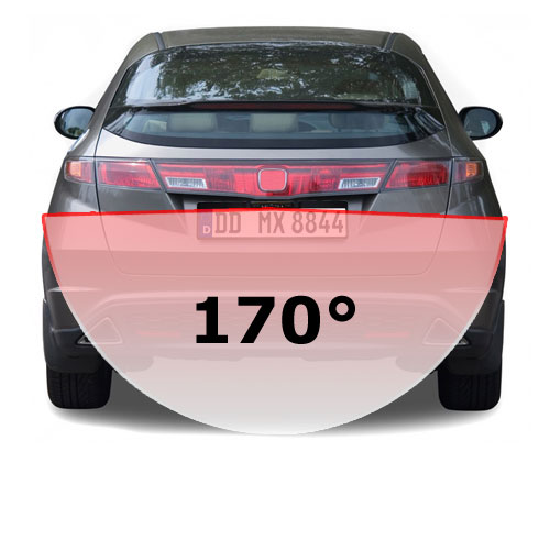 The optics gives you a horizontal wide angle view of 170 degrees, so that the majority can be detected behind the vehicle. In addition, the camera is also vertically adjustable (with assembly bracket ), ie it can be customized according to each hatch type of vehicle (eg steep Combined tailgate or flat coupé tailgate).